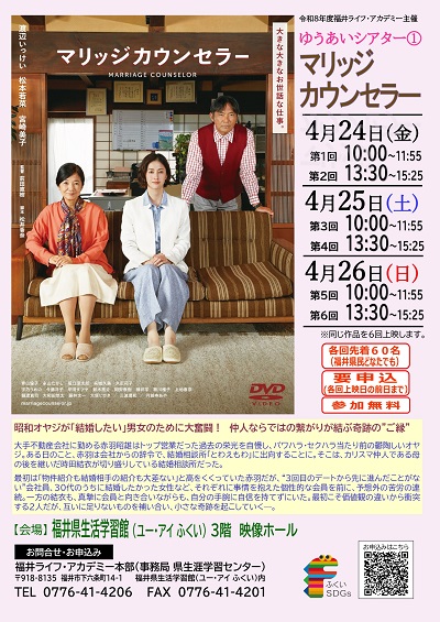 | ¤æ¤¦¤¢¤¤¥·¥¢¥¿¡¼£±¡Ö¥Þ¥ê¥Ã¥¸¥«¥¦¥ó¥»¥é¡¼¡×¤ò¾å±Ç... | 04·î24Æü ¡Á 04·î26Æü | Ê¡°æ¸©À¸³è³Ø½¬´Û¡Ê¥æ¡¼¡¦¥¢¥¤¤Õ¤¯¤¤¡Ë | |