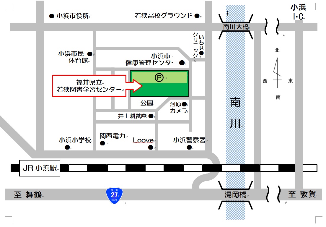 【福井県立若狭図書学習センターへの交通アクセス】 住所小浜市南川町6-11 連絡先0770-52-2705 交通手段JR小浜駅から徒歩約15分
